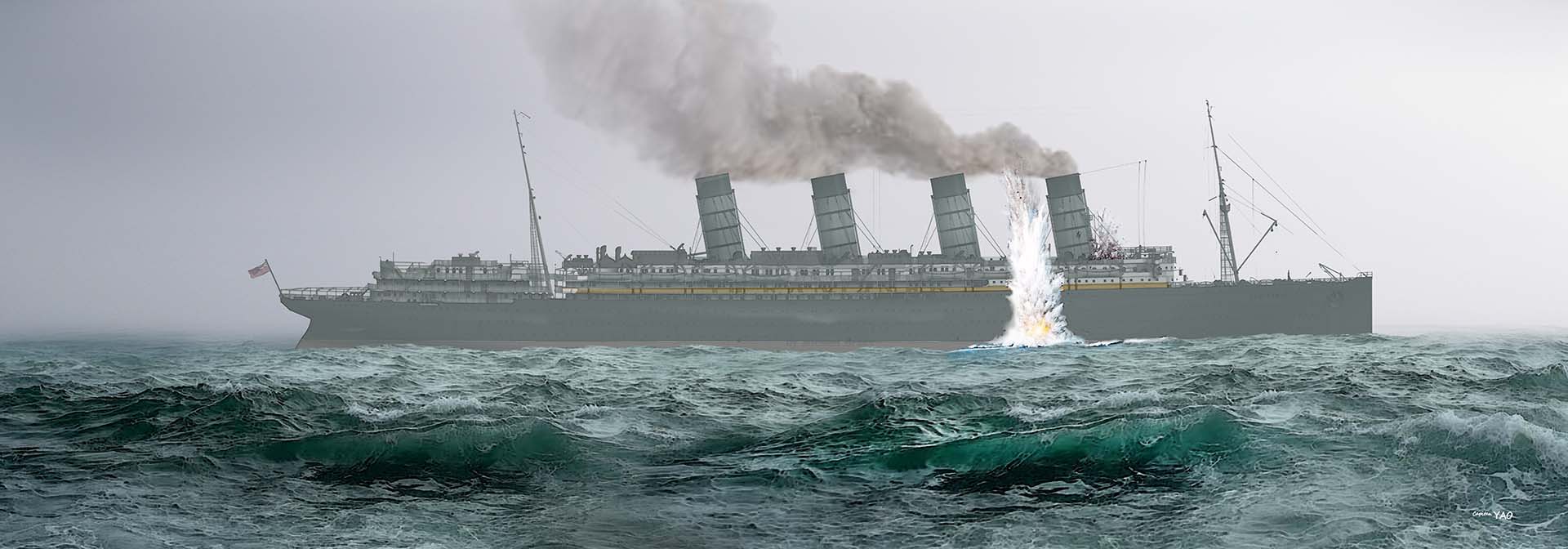 (圖1-10-2) 1915年英國郵輪「盧西塔尼亞號」被德國潛艇擊沉,船上載有美國乘客,成為美國參加一次大戰的導火線。