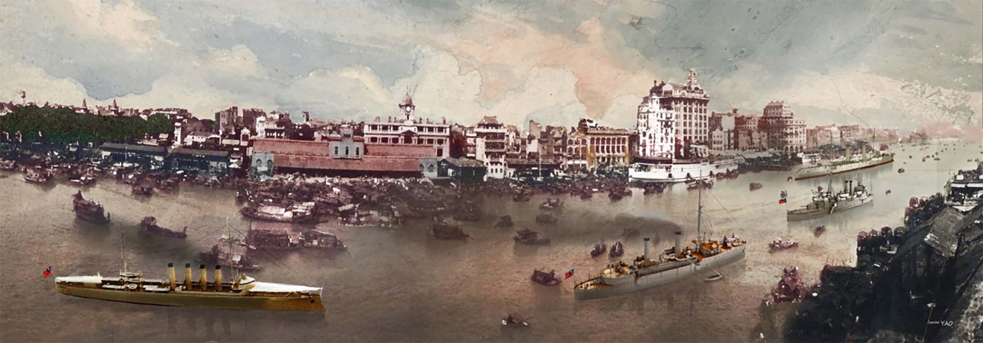 (圖1-10-4) 護法艦隊停泊在廣州珠江,成為孫文開府廣州的本錢。