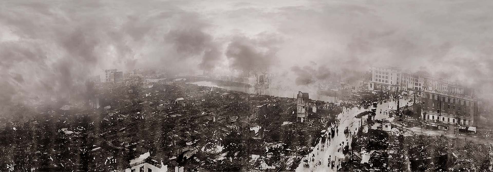 事實上在這次所謂的關東大地震(Kanto Earthquake)中罹難的人,大部份不是被壓死而是被燒死的,由於東京地區大部份都是高度密集的木造房屋,又正好在準備午餐時刻使用瓦斯,地震引發大火加上強風助長火勢連燒了三天三夜,造成居民死傷慘重,放眼望去整片市區都已化為焦土瓦礫。後來據報導,這一次關東大地震規模7.9級,總共造成日本91,544人的死亡。因地震直接倒塌的房屋僅128,266間,但因失火而燒毀的卻有70萬幢。聽說有許多人本已逃出聚集在廣場上,卻因為四周都是燃燒的房子把氧氣都消耗光了,幾千人就這樣窒息而死。