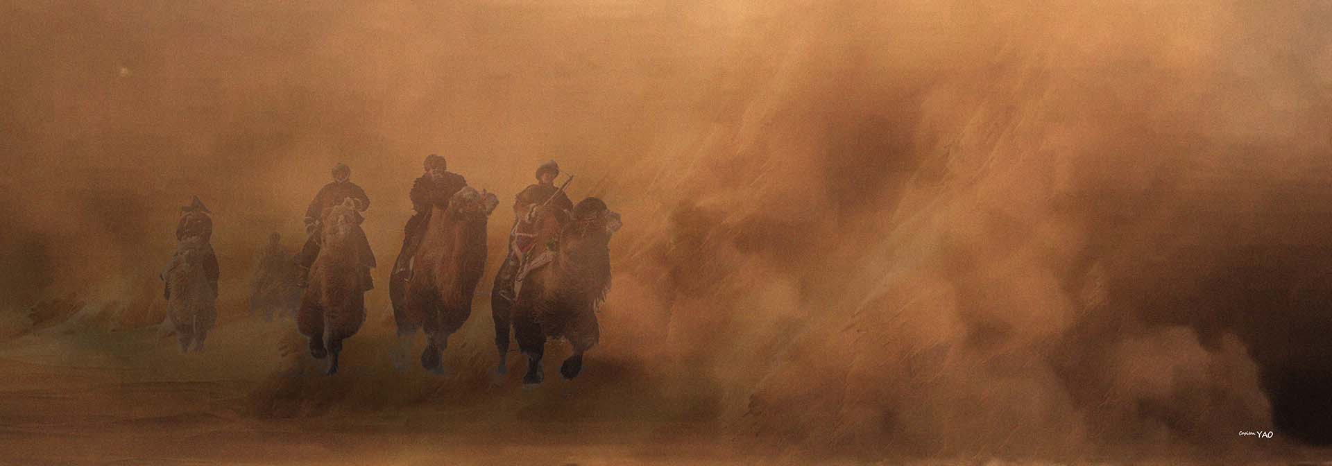 (圖1-4-2) 德芮肯男爵在離開敦煌後不久就陷入一場狂烈無比的沙漠風暴中,最後為樓蘭騎兵所救。
