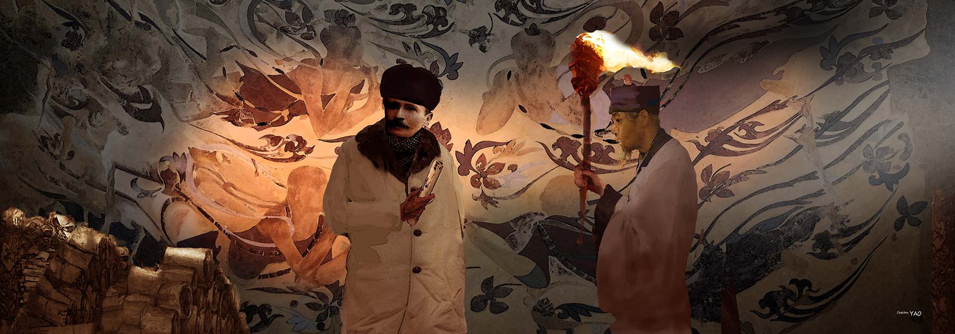 「唉!解決了敵人倒是著了自己人的道,通過中印邊界時駐守的英國軍官竟然不肯放行, 白白浪費了好多天!」 史坦因說:「對了!聽說敦煌附近有個千佛洞,裡面的壁畫很漂亮,可不可以安排去看看?」