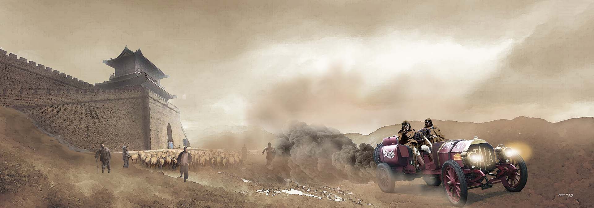 1907 年六月初參賽的汽車海運到天津上岸,德芮肯男爵以狐疑的眼光在碼頭看著法國人將汽車裝上火車以鐵路運往北京,心裡想著:「這些法國佬真的就不肯死心?」 原來一直想要在中國內陸尋找機會,而之前派出的探險隊又被德芮肯男爵暗中動手腳阻撓的法國政府,趁德芮肯男爵身陷樓蘭之際假借報紙名義舉辦這場汽車越洲大賽,三組法國車隊中有一組是由情報單位派出,計劃在途中以迷路為理由脫隊轉往羅布泊,另兩組車隊做為掩護繼續前進。 法國人行動迅速,等德芮肯男爵回到天津時已經來不及阻止了,法國政府這一回是打定了主意,就算中國政府不同意也要強行開動。 各車隊在六月十日從北京出發,當年這段路線根本沒有可供汽車行走的道路,許多地方要靠騾馬拖拉甚至人力扛抬才得以通過;所經之處多是荒無人煙甚或盜賊橫行的化外之地。 中國官員老早表明無法提供安全上的保證,但當時的歐洲人把衰弱的中國當成他們的次殖民地,打從心底就不在乎中國政府的態度。 六月底一組法國車隊果然依計劃在蒙古脫隊,但急於想找到通往樓蘭洞窟道路的他們卻在一望無際的大草原中迷失了方向,最後被蒙古騎兵發現將他們押解回關內,法國人的企圖遭到挫折。 這場有史以來第一次的汽車越洲大賽最後由義大利王子西皮歐波基思(Prince Scipio Borghese)的車隊在出發兩個月後的八月十日抵達巴黎而獲得勝利。 不甘心的法國人 1931 年又出動了一次由著名探險家喬治·哈特(Georges -Marie Haardt)率領,裝備 14 輛向雪鐵龍汽車公司專門訂造的半履帶越野車的遠征車隊,以「黃色之旅」(Croisere Jaune)為名分兩路向樓蘭進發,最後仍是無功而返,領隊喬治·哈特還在到達北京時病故。