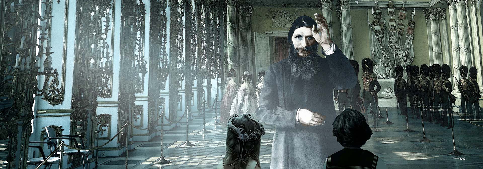 我們倆跑到一個空的房間把門關上,安娜史塔西雅靠在牆上氣喘噓噓地說: 「他是來幫弟弟治病的教士,名叫格立果.拉斯普丁(Grigory Rasputin),我不喜歡看到他!」