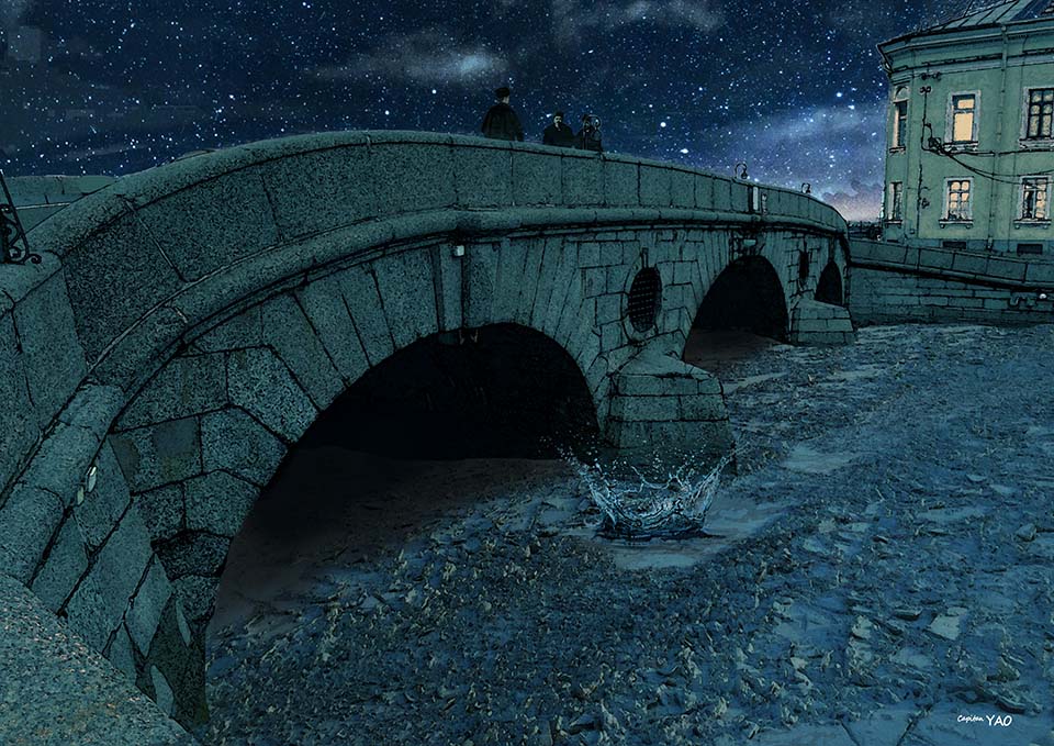 (圖1-9-4) 拉斯普丁的屍體被捆綁繫上石塊拋入涅瓦河中。