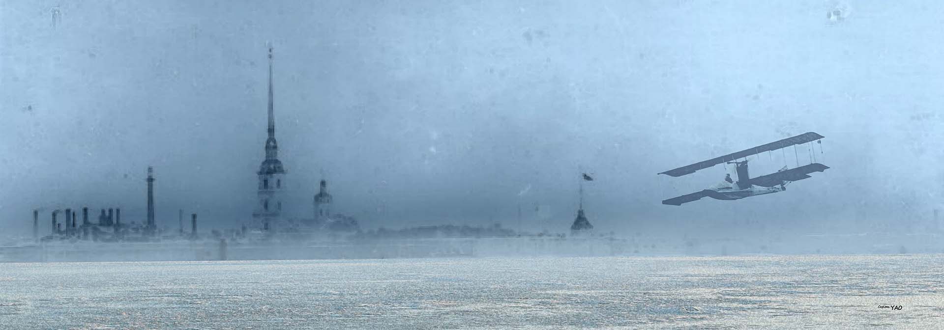 (圖1-9-8) 俄國海軍水上飛機從涅瓦河上起飛,搭載德瑞芮肯父子離開聖彼得堡。 我們回到倫敦,父親立即進宮呈遞沙皇的信函,國王看後不發一語,說要召集群臣討論,然後就讓父親退下。我們後來知道英國並沒有採取任何行動,原來害怕革命連鎖反應的喬治五世拒絕了表兄弟的求救。 這個轉變也呈現在與俄國臨時政府軍事領袖亞歷山大·瓦西里耶維奇·高爾察克(Алекса́ндр Васи́льевич Колча́к)的合作上。當時高爾察克正在日本,已經獲得英國同意前來倫敦會商,然而政府態度臨時改變,讓高爾察克在途經新加坡時被阻止,只好回到俄國最後兵敗被殺。 父親這一段時間忙的不可開交,因為除了俄國內戰的事,他還奉命趕回中國,臨走之前必須安排好我的寄宿學校,這是我第一次到英國,一切都很陌生,唯一的親人卻不能陪伴在身邊。 沙皇一家終於沒能逃出聖彼得堡,1917年11月7日夜晚,「拉芙樂爾」號的探照燈射向冬宮,艦上水兵開響了共產革命第一砲,布爾雪維克黨人推翻了克倫斯基的臨時政府並攻入皇宮逮捕沙皇全家,這就是所謂的「十月革命」。