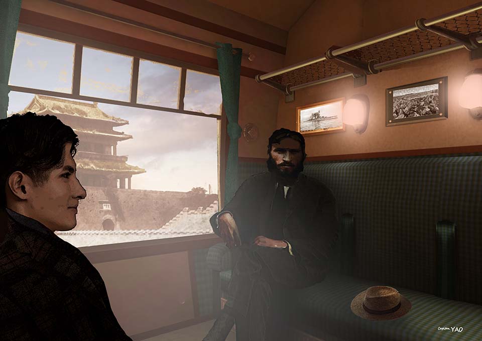 After what seemed like an eternity, I awoke to the swaying and noise of the train and found myself lying on the sofa in my compartment. A large, burly Westerner sat opposite me. I felt a sense of relief; at least I hadn't been kidnapped by anti-Western Chinese revolutionaries. So I struggled to my feet and said to him, "I am an officer of the British Empire..."