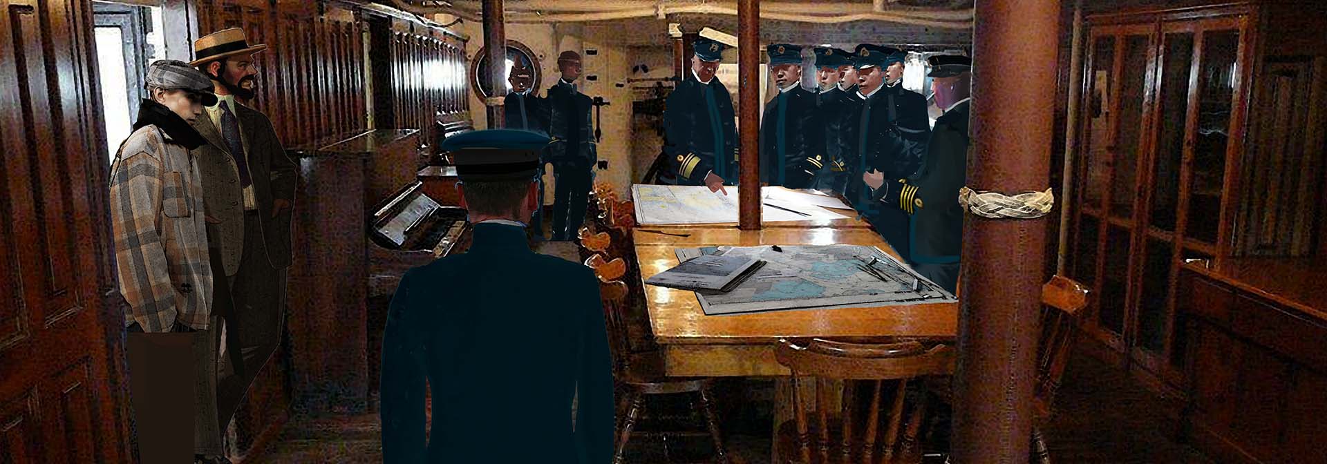 (Figure 2-1-12) A battle plan briefing was being held on the "Haichi" flagship, and Korniloff happened to be entering with Paul.