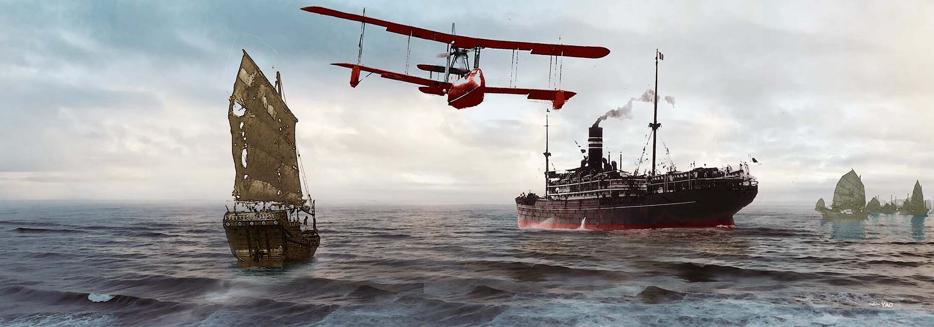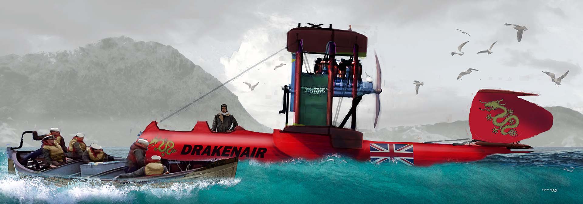 我們組成了一家「龍航空公司」(DRAKENAIR)及「龍虎空中雜技團」,我用大帥賞賜的五千英磅和 M 先生的一千英磅向洋行購買了兩架中古的 A.D.Boat 式水上飛機將它們漆成紅綠兩色,並仿照大清國旗的圖案式樣在尾翼上漆上一條金龍。一艘叫「龍號」、一艘叫「虎號」, 一人一架輪流出勤。