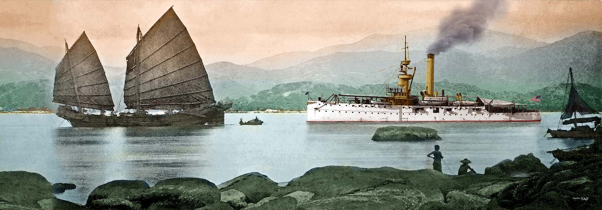 (圖2-5-7) 美國海軍國砲艦USS Helena在廣東內河。