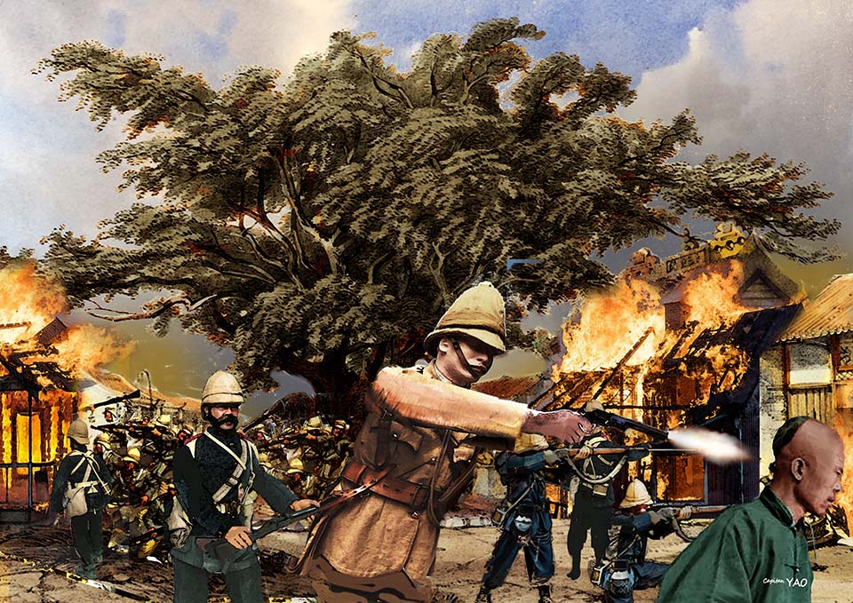 我後來才知道中國的海盜往往是整個村莊的人參與,所以清勦時就免不了會殺死成群無辜的老弱婦孺,這種景象讓我震驚不已。我甚至懷疑這些陸戰隊是對黃種人才會如此大開殺戒,當看到一名軍官對著一個嬰兒的腦部開槍時,我開始後悔,到底該不該帶他們來這兒?