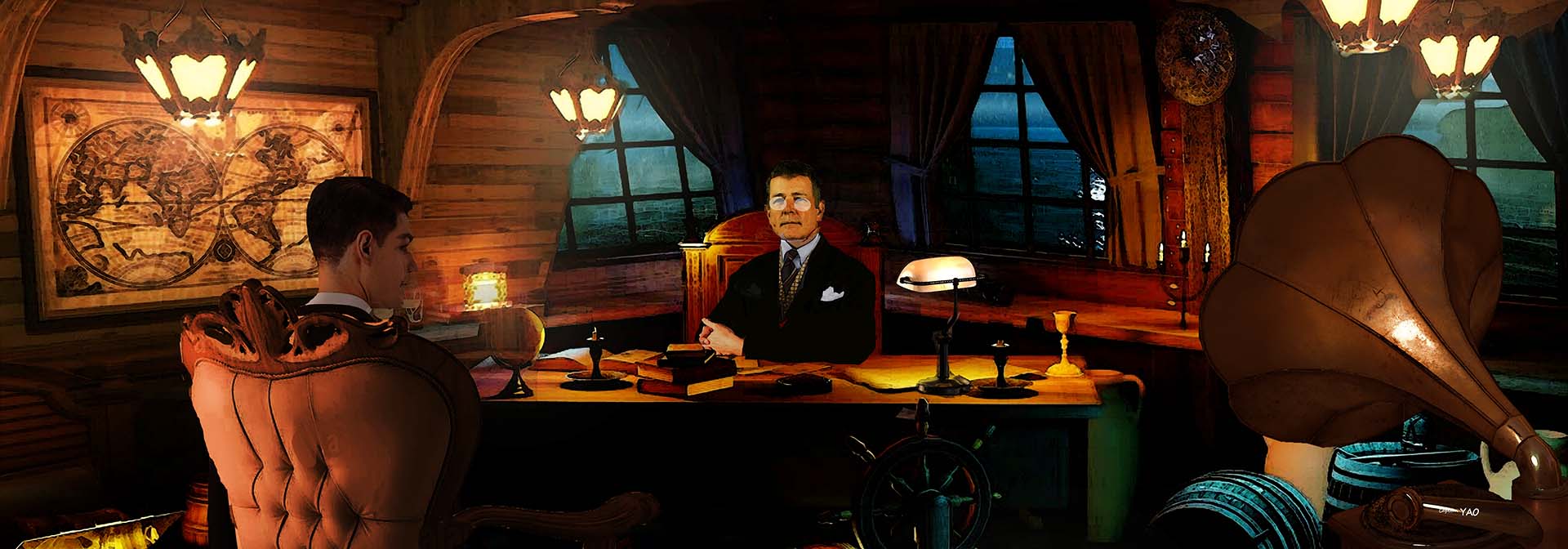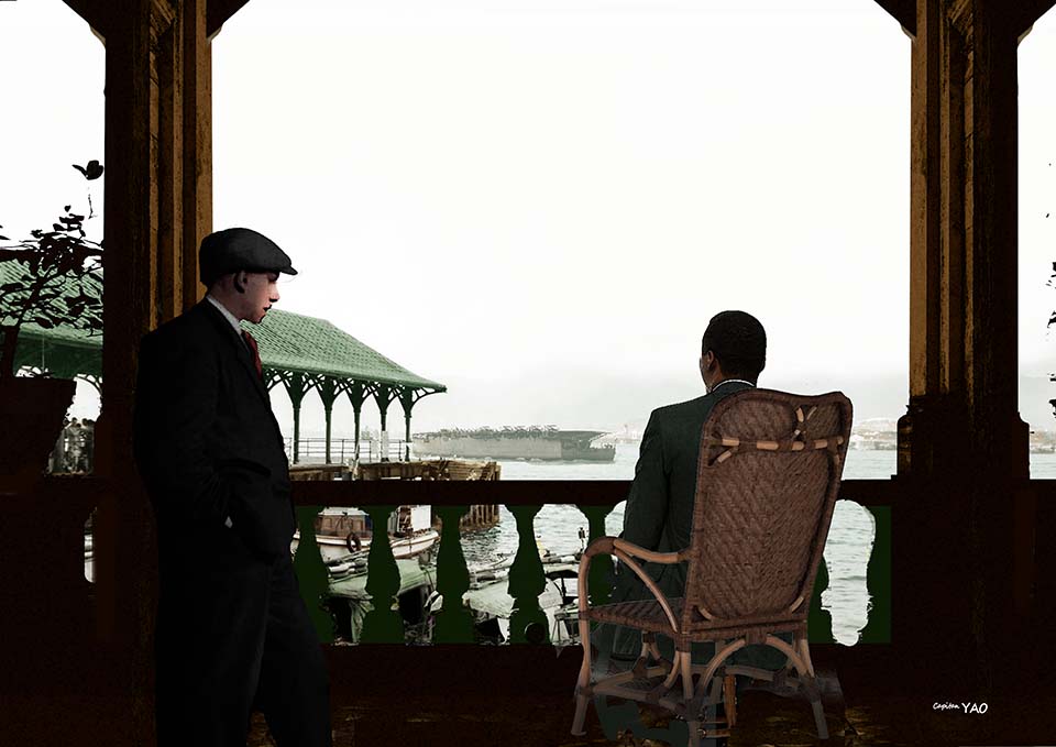 (圖2-6-6) M先生在添馬艦船尾的辦公室與龍保羅商討打擊水匪的事宜。