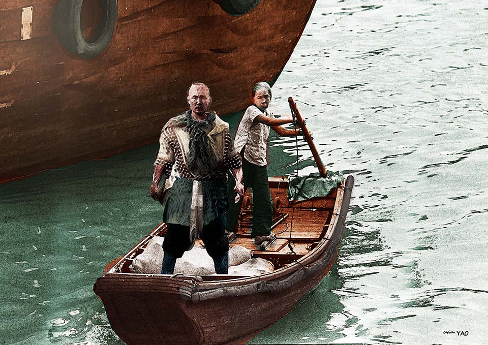 (圖2-6-4) 羅漢跳上舢舨匆匆離去,似乎感覺到將有不好的事發生。