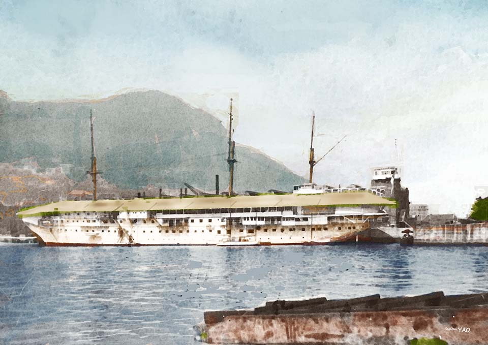 (圖2-6-5) 已成為躉船的添馬艦(HMS Tamar)是M先生的辦公室。