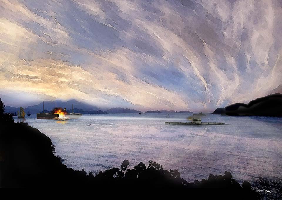 我知道他是指幾個月前皇家海軍「L4」號潛艇把被劫的招商局商輪「愛仁」號連船帶海盜乘客一起給轟沉的事。「愛仁」號是行駛省港間的定期班輪,她曾經在 1894 年被中國政府租用運兵韓國,當時船隊中另一艘向怡和洋行租用的「高陞」號輪船被日本「浪速」軍艦擊沉,造成淹死近千人的慘劇,並引發中日之間的戰爭。