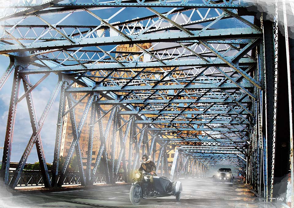 我用摩托車載著他在外灘街道上疾馳,路上車輛很少,只有後面一輛車的燈光一直緊跟著令人覺得有些討厭,到了一個窄巷口前霍尼羅夫突然說:「進去!進去!」