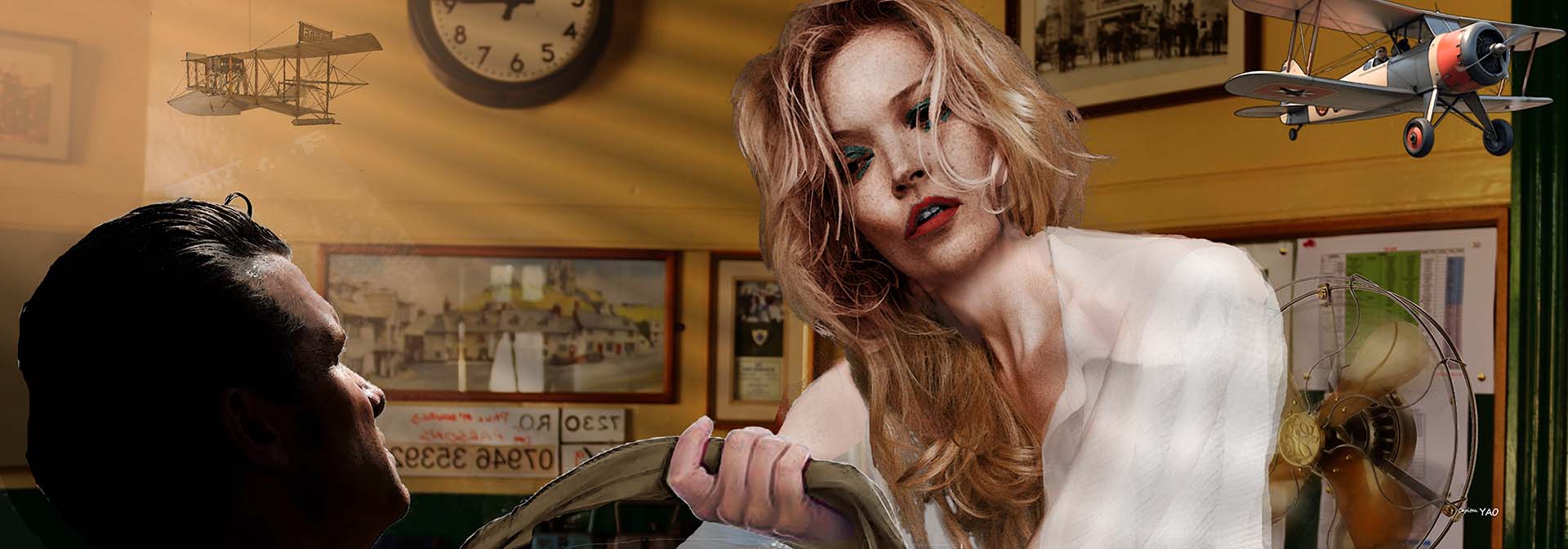 兩架飛機都沒了,整天在公司裡也是無所是事,七月的上海天氣非常悶熱,暈黃的陽光從百葉簾射入,在室內分割成一道道的光和影,寫字間內那架銅電扇有氣無力地轉動似乎起不了什麼作用,