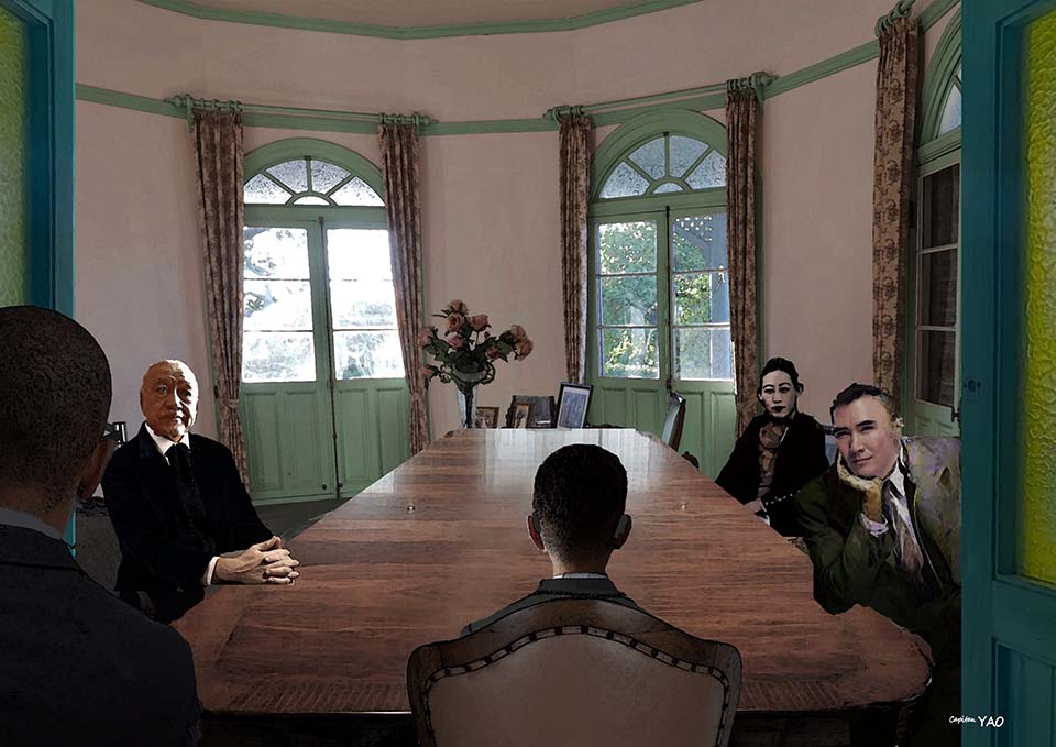 僕人引領我們在大廳中的一張大桌子旁坐定,然後一個戴著圓眼鏡瘦弱的年輕人從室內走出來,眾人看到了連忙起立鞠躬致意。川島芳子看到我沒反應,拉拉我的衣角說:「你忘了,這位就是亨利堂哥,皇帝陛下呀!」