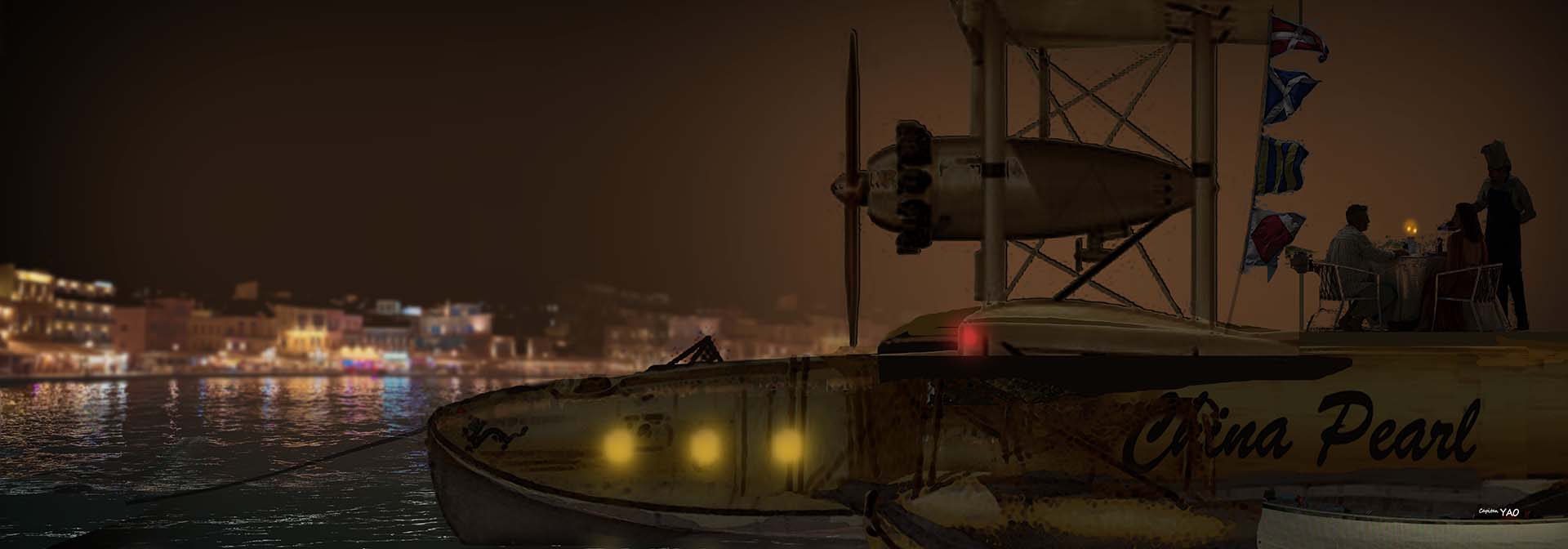 (Figure 3-3-2) The "China Pearl" is docked at the mouth of the Singapore River, and a dinner is held on the top of the plane.