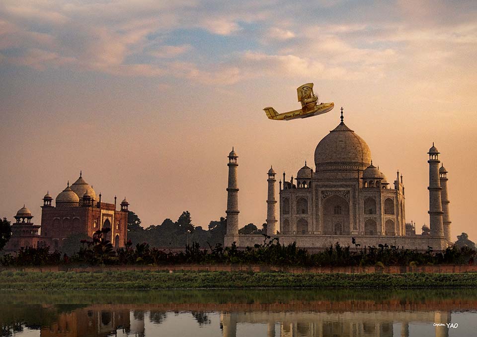Although it was winter, the local climate was extremely hot. By the time we got back on the plane in the afternoon, we were almost dizzy from the heat. Annie sat in the cockpit, started the engine, and wanted to take off quickly to enjoy the cool air. However, Annie and I were used to flying in cooler areas and forgot that the air density in tropical regions is lower, resulting in relatively weaker buoyancy, so a longer taxiing distance is needed for takeoff. When Annie took off from the river, she didn't notice that the climb altitude was lower than usual. By the time I realized something was wrong, the Taj Mahal was almost completely in front of the windshield.