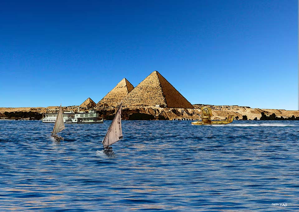 I've heard this claim from my father. Some say that Hungary was a branch of the Huns who migrated to Europe after losing a war with China. But the expression on László's face when he said this always struck me as odd. Because of the connection with the Loulan Pearl, I begged Laszlo to take us to visit the "Cave Of Swimmers " the next day, but Laszlo said that the place was called Gilf Kebir, near the Libyan border, and it was about a thousand miles away, a five or six-hour flight each way. That was the limit of the "Pearl of China's" range, and it was uncertain whether we could refuel there for the return trip, so we had to give up. In that case, I suggested we fly directly across the Mediterranean to Malta the next day, but Annie said, "How can we come to Egypt and not even see the pyramids and the Sphinx?"