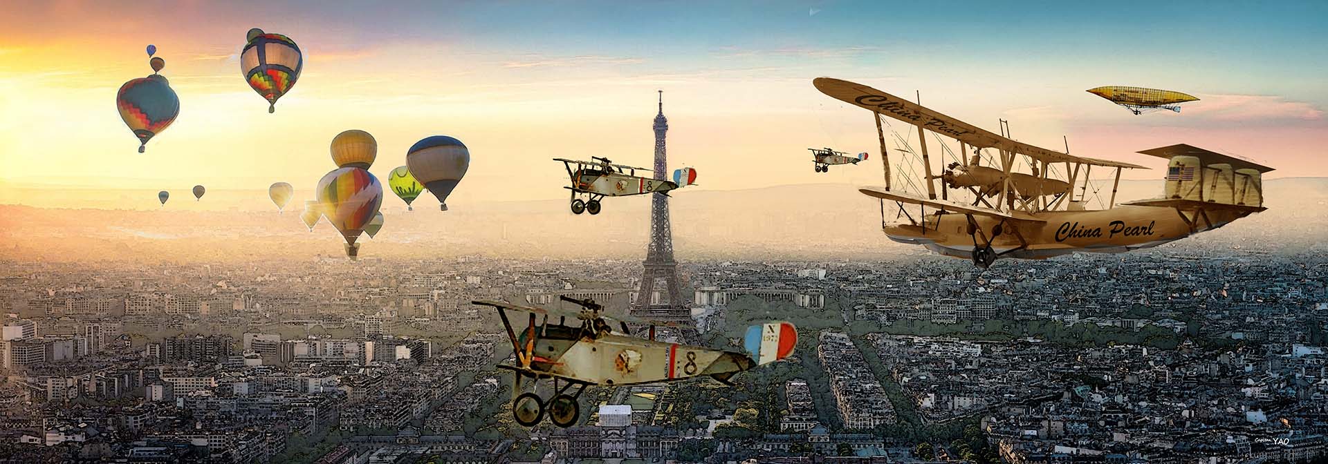 (Figure 3-3-8) The "China Pearl" flew over Paris, and various planes and airships from the local flying club took off to greet it.