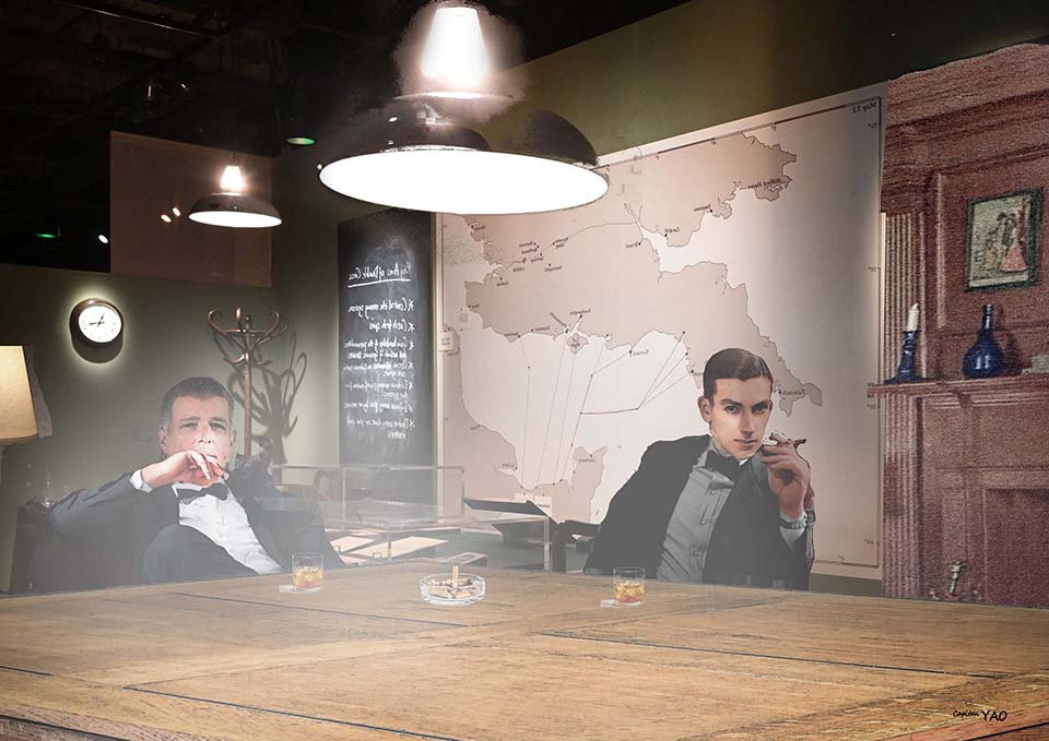 我被引進一間煙霧迷漫的辦公室,一開門就看見我的冤家,M先生坐在一張大皮椅中抽雪茄,一旁還坐著一位抽著紙煙的年輕人,我定睛一看吃了一驚。
