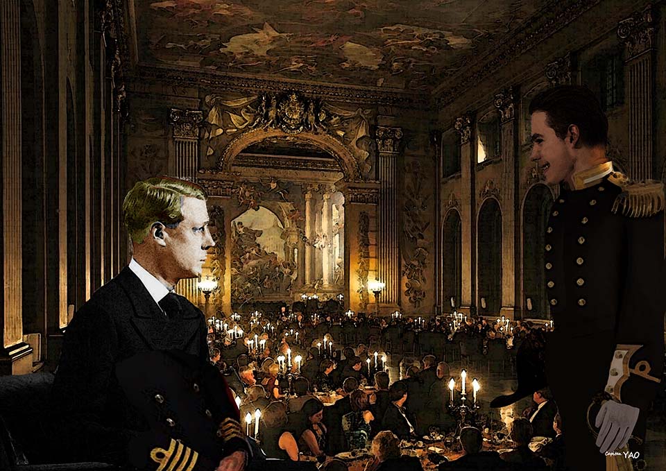各位不要以為我在皇家海院只記得餐廳與吃飯,實在是這兒的餐廳太有名了,連皇室都常常借這兒招待外賓。我們畢業的宴會就在這裡舉行,由王儲威爾斯親王主持,他大概聽說海軍有個中英混血的小子在中國很混得開,特地在晚宴開始前召見我。
