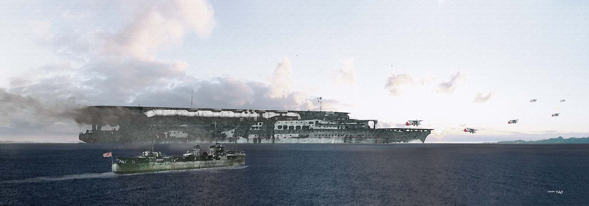 (圖 3-9-1) 日本海軍航空母艦「加賀」參加「第一次上海會戰」,從外海起飛90式艦載戰鬥機。當時「加賀」還未改裝,仍是三層甲板的時代。
