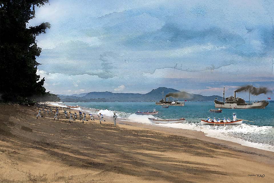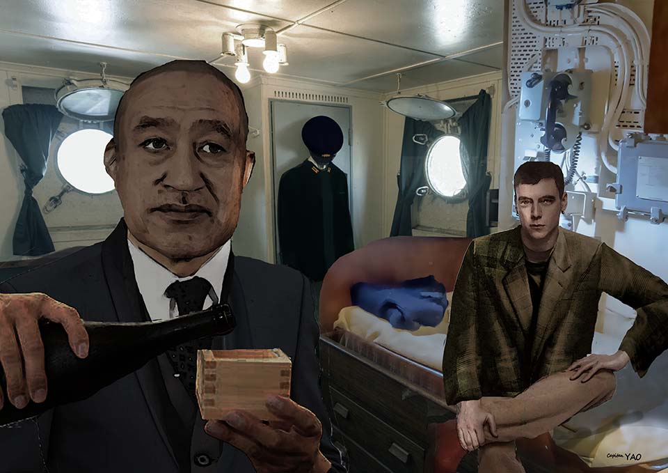 不知過了多久我醒來時發現躺在船艙中,搖晃的甲板顯示船是在海上航行,我以為是在「鎮海」艦上,這時艙門打開一名水兵送飯進來,我看到他穿的是日本海軍制服心中暗自咒罵了一句,怎麼那麼倒楣,又被綁架了?