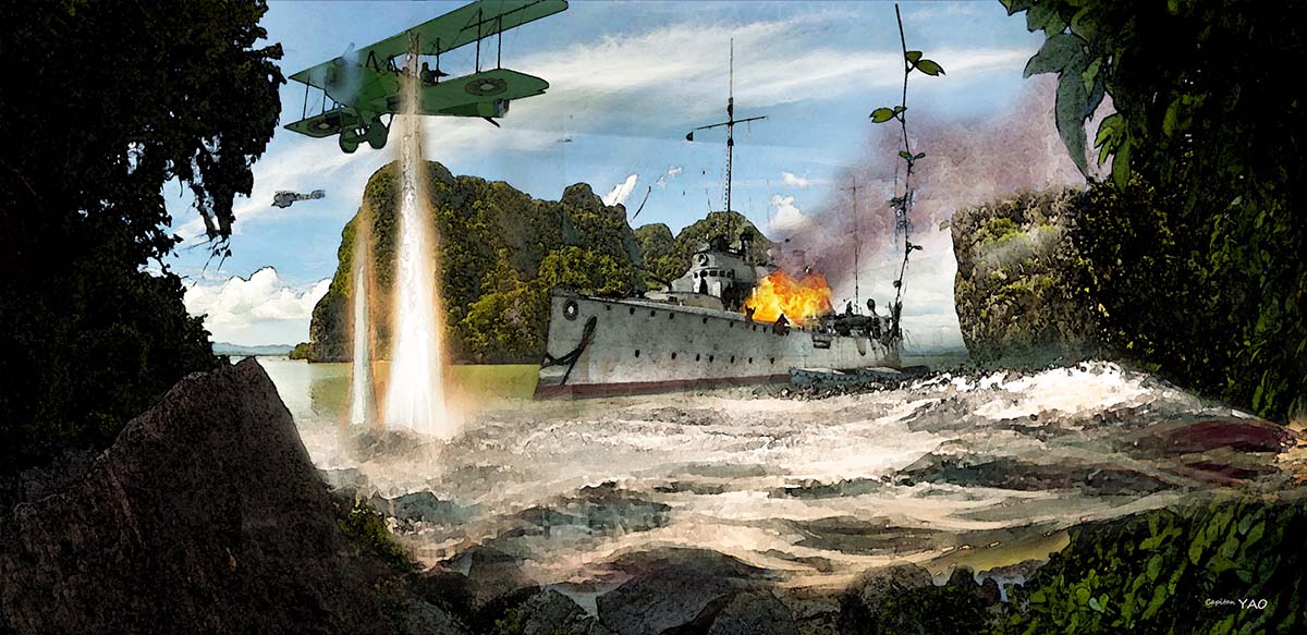我在六月底即秘密到達廣州,為了把握起見我堅持由宋飛虎擔任主攻,第三飛機隊隊長丁紀徐率機三架掩護,由於沒有航空魚雷與瞄準器,任務施行困難度頗高;我根據上海經驗整理了一些公式與製作簡單的瞄準工具,居然還十分管用。