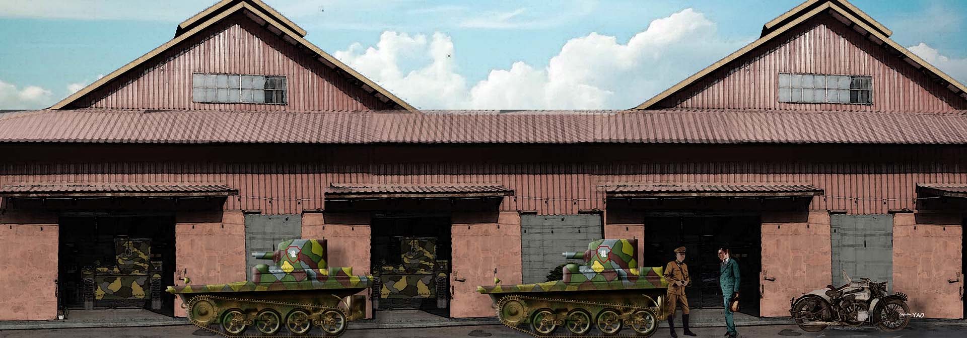 (圖 4-2-4) 龍保羅向稅警團推銷的英國維克斯兩棲坦克抵達上海,龍保羅並陪同孫立人上校到洋行倉庫檢視。
