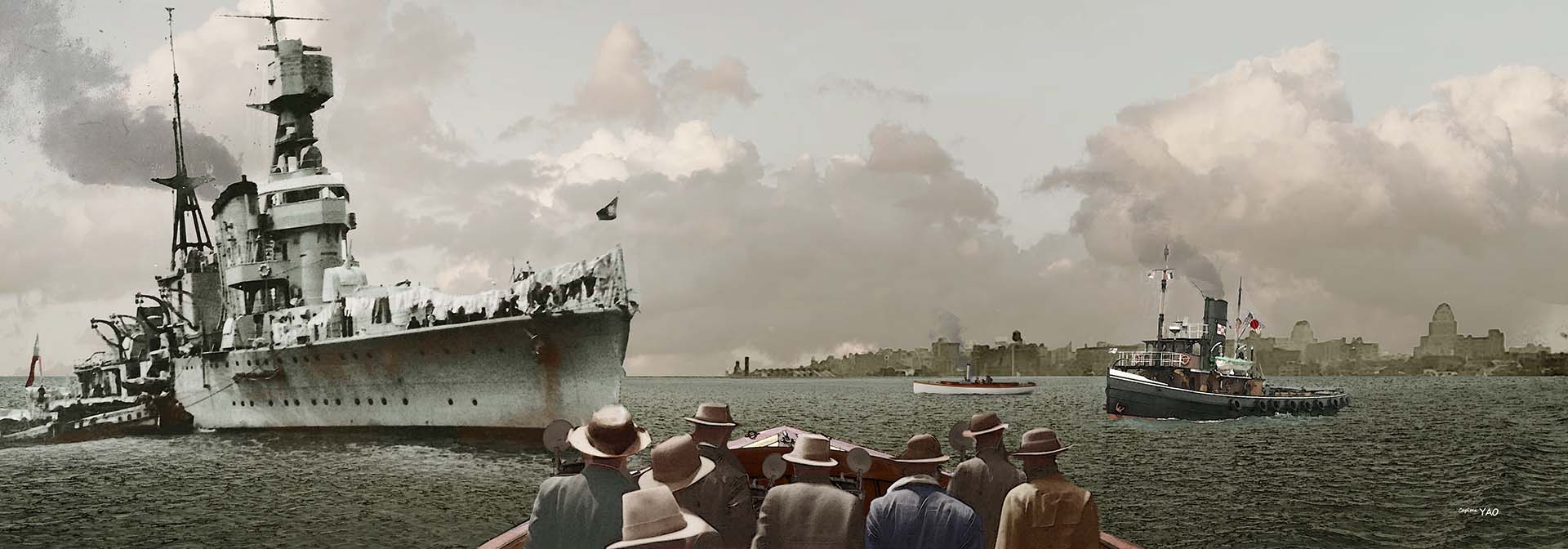 7日當天軍「寧海」艦靠近橫濱外海時,我也登上艦橋看他們佈署進港,遠遠見到有小艇駛來,這時我發現艦兩舷欄杆上還披滿了晾曬的被單,我趕緊向艦長高上校報告,不過艦長的回答似乎覺得我是大驚小怪。