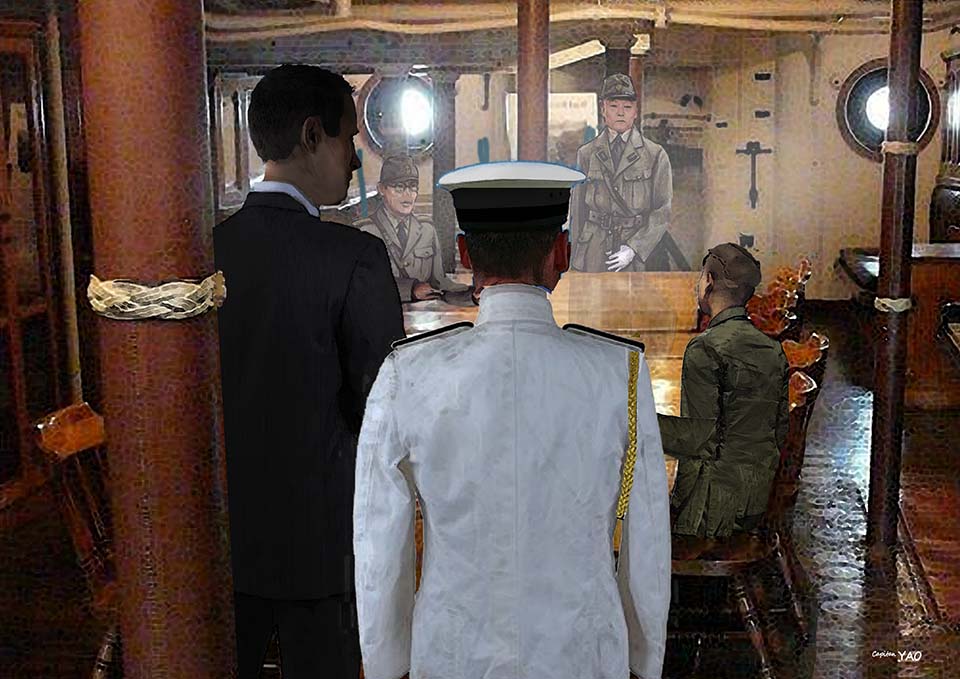 (圖 5-9-6) 龍保羅在「宇治艦」官廳內與日本軍方代表會談。