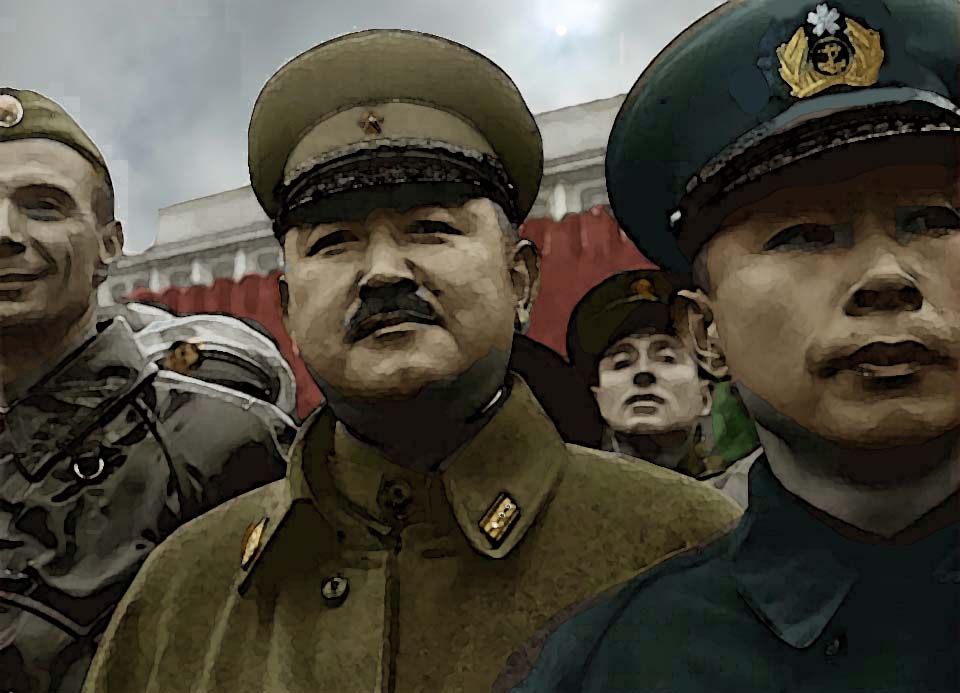 1945年六月二十四日早晨十點,紅場教堂的大鐘敲響最後一響,由史達林親自主持的勝利大閱兵在紅場正式開始,中國因是同盟國五強之一,代表團由軍委會政治廳廳長鄧文儀中將率領高坐在主席台中央,日本武官則坐在最旁邊,哭喪的看著昔日盟友納粹德國的軍旗被紅軍在地上拖著走過觀禮台拋棄。