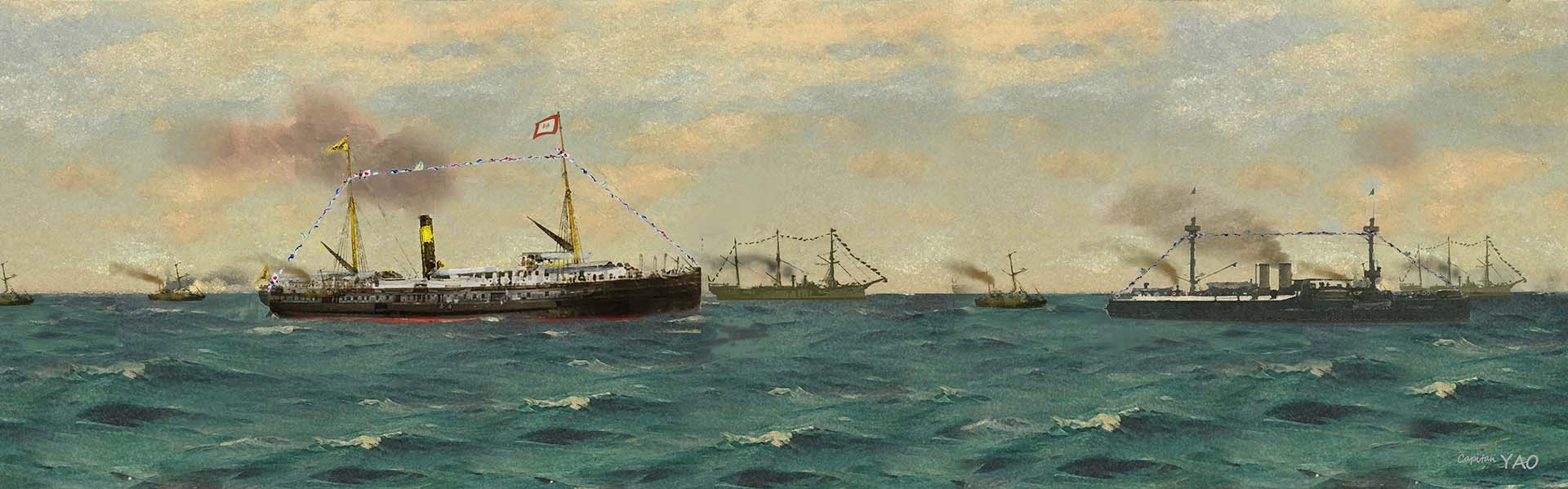 (圖 6-1-2) 1886年北洋水師在渤海的大會操,由醇親王主持,這是北洋水師的高光時刻。 與閩系幾乎同時,南方的廣州也建立了自己的地方海軍,廣州海軍實際上只能算是水警,因為都是些砲艇小船。廣東海軍以黃埔海校畢業生為主,由於地利之便與香港關係頗深所以與英國海軍亦夙有來往,不過不像閩系那麼直接。 東北海軍則是沈鴻烈在張作霖的支持下成立的,因是以青島海校畢業生為主故亦稱青島系,主要以日本海軍為模仿對象。電雷學校則是蔣介石希望成立自己的嫡系海軍而成立,時間最短,與德國關係較深。 四個派系當中以閩系海軍學識基礎最好,青島、廣東次之,電雷是短期速成程度最差;其次青島系受日本式教育戰鬥性格最好,閩系軍官文弱不似軍人,廣東海軍商業個性強烈走私最在行,電雷系自命天子門生,政治掛帥,內鬥內行。這不是我講的而是我的老師沈鴻烈說的,不過我倒是十分同意他的評語。 由於閩系一向自命為中央海軍,對所有其他各派系一律加以排斥,所以到處樹敵;蔣介石對於這一支非嫡系的海軍亦如芒刺在背,一直想找機會加以控制,只是自己手下缺乏夠資歷的海軍人才,才成立電雷學校徐圖未來。抗戰爆發後青島與電雷兩校合併,蔣介石便利用這兩校畢業生仇視陳紹寬的心理對閩系展開大整肅。