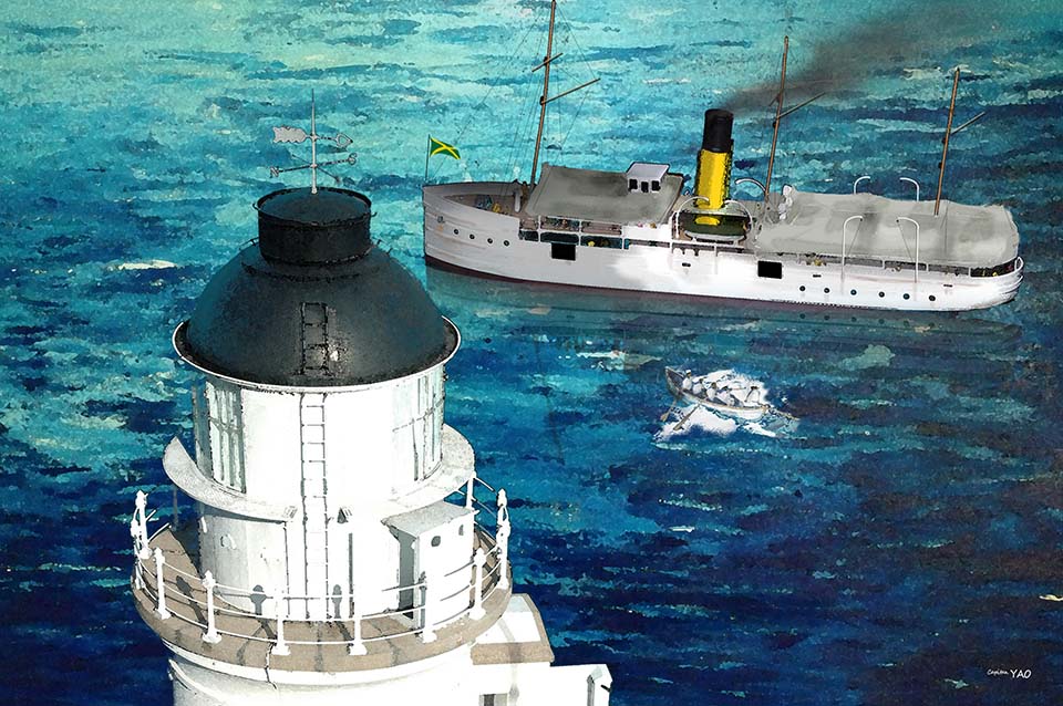 (圖 6-1-3) 東湧燈塔與海關燈塔補給艦,在中國燈塔是歸屬海關管理。