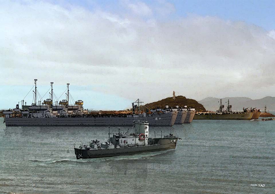 (圖 6-1-4) 青島中央海軍訓練團,訓練並同步接收美國援贈的登陸艦艇。