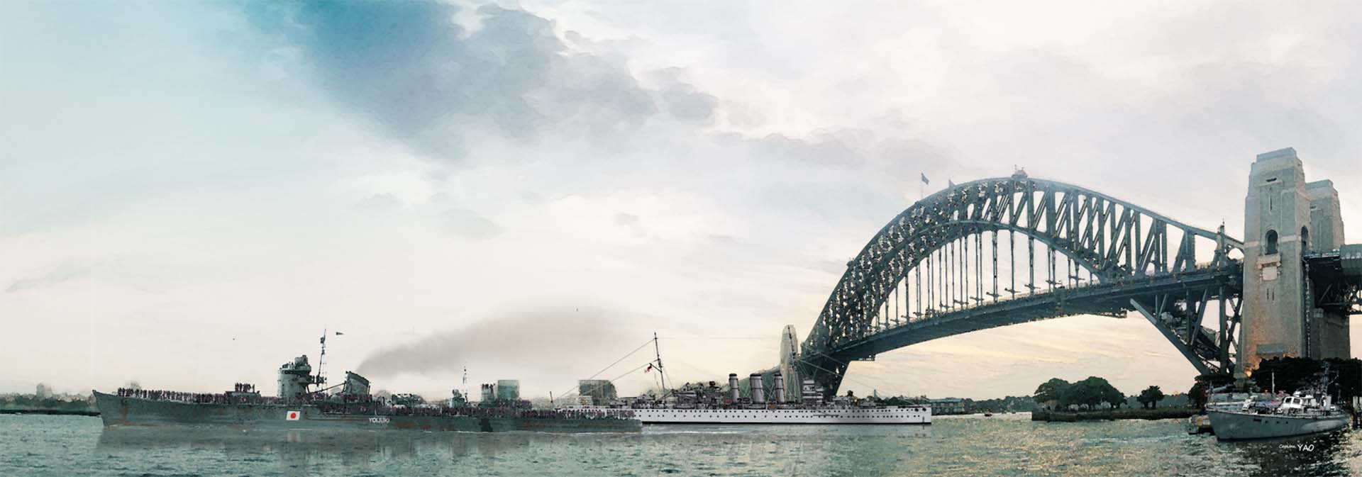 (圖 6-2-5) 已拆除武裝充當復員用特別輸送艦的「宵月」裝滿遣返人員離開澳洲雪梨港。 在盟軍當中,澳洲人是最痛恨日本人的,在他們眼中,台灣人與日本人沒有兩樣,不會因為自稱是戰勝國國民而有所改變,由「宵月艦地獄船事件」也可以看出台灣人現實的一面。