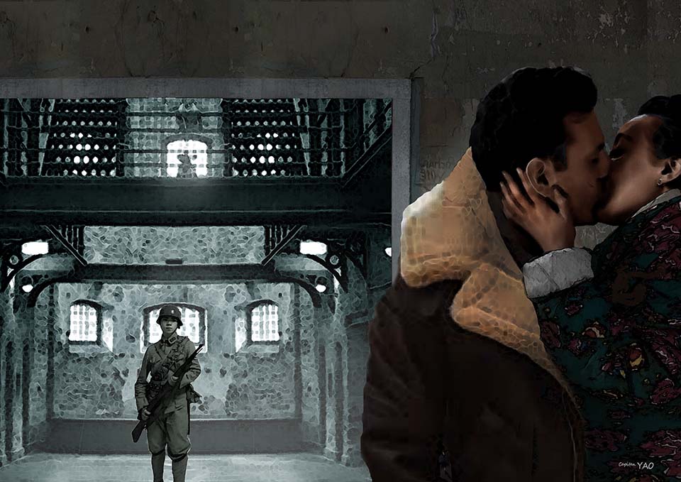 (圖 6-4-2) 龍保羅探視川島芳子,避過衛兵的視線在門後擁吻