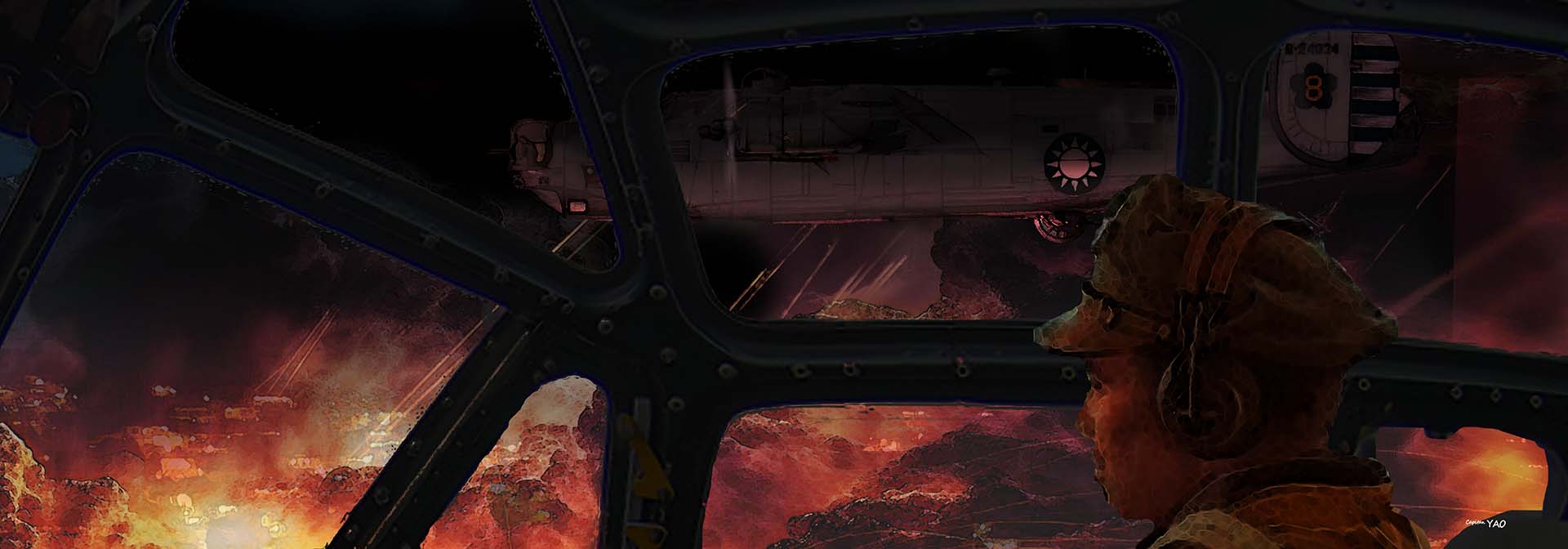 (圖 7-1-4) 1950年五月十一日,國民黨空軍兩架B-24重轟炸機在大隊長李肇華中校率領下飛抵上海準備轟炸江灣機場的蘇聯米格-15戰機,當場被高砲擊落。