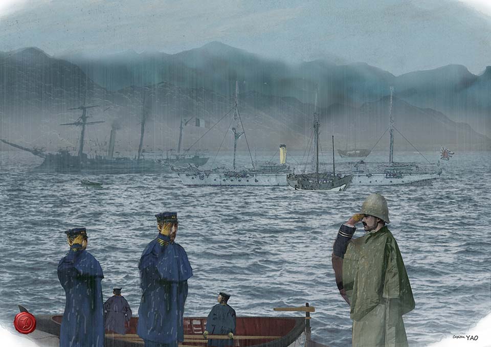 在法軍進攻基隆時,一艘日本海軍的「 天城」號砲艦跟隨孤拔的艦隊觀戰,該艦的艦長為東鄉平八郎少佐。十年前日本曾經藉口琉球船民被殺事件覬覦台灣(即牡丹社事件),但因實力不濟而未能得逞,東鄉此次來基隆,心裡必然想著該件事情。 十年後東鄉擔任「 浪速」號巡洋艦的大佐艦長,率先擊沉清軍向英商怡和洋行租用的商船「高陞號」,開啟了中日甲午海戰的序幕,台灣終於納入日本帝國版圖。再過十年東鄉平八郎以大將軍階擔任聯合艦隊司令,在日俄戰爭中連續擊敗帝俄太平洋艦隊與波羅的海艦隊,贏得完全的勝利,成為日本海軍的軍神。 法軍佔領基隆後一週「 天城」艦開入基隆港,東鄉平八郎艦長率領七位軍官登岸,法軍方面的聯絡官是一名年輕的工兵上尉約瑟夫·霞飛(Joseph Joffre),後來一次大戰的英雄與法國陸軍總司令,上海法租界的「霞飛路」 就是以他的名字命名。他們一行人參觀了舊二砂灣砲台。 很少人知道東鄉平八郎與霞飛在基隆的事,兩位後來在世界歷史上赫赫有名的元帥,初次的相會竟然是在基隆的二砂灣砲台,這個因緣是基隆可以運用的文化元素。