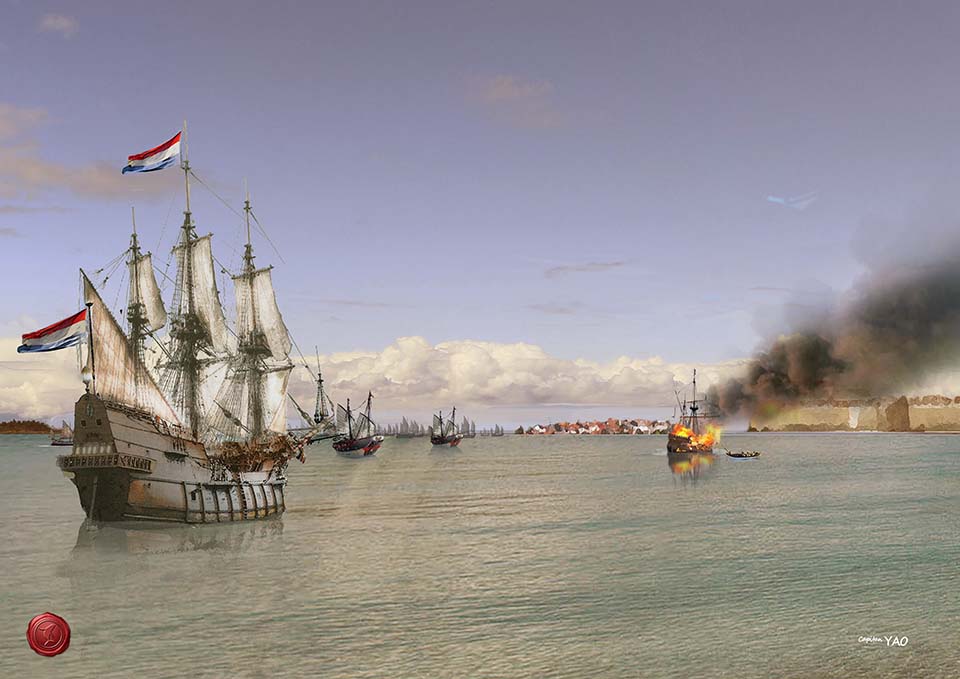 (圖說)Immenhorn號在熱蘭遮城航道擱淺放火自焚。