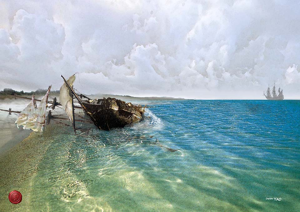 在那港道的南邊擱淺在濤浪中,立刻翻船,只有人員獲救。詳情請您閣下參閱在此附寄的備忘錄。(註3)