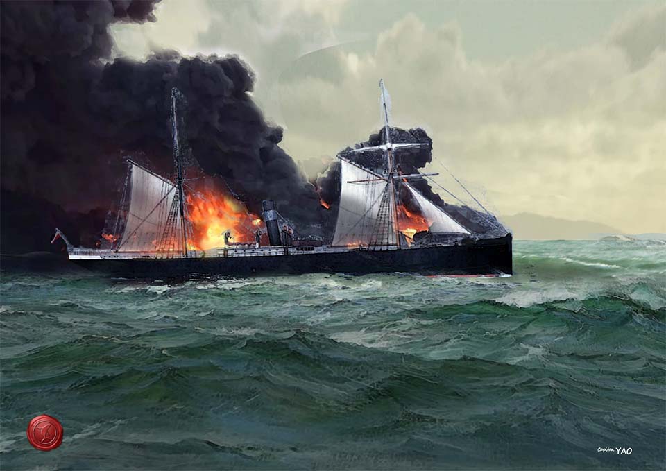 德國商船SS Arnold Luyken號滿載汽油由印尼的Aroe Bay開往中國塘沽途中,1903年11月23日在台灣海峽因失火而棄船,位置約在福建牛山島(Turnabout)附近。 (註1) SS Arnold Luyken由於目的地不是台灣,所以沒有留下太多紀錄,但由於事故發生在台灣海峽,所以從總督府報中仍然會看到經由英國海軍的海事通報及追蹤尋找的過程(日文文獻稱 SS Arnold Luyken為アーノルドㄦイケン)。航路一說有經香港,失事地點亦有說在白犬島(White Dog Island,即今日的馬祖西莒),就可能與台灣水下文資領域有關。 SS Arnold Luyken是一艘貨輪,1888年7月由德國Flensburg的Flensburger Schiffsbau Gesellschaft,建造完工,船籍港設在漢堡。SS Arnold Luyken的排水量為1,095總噸、滿載1,742噸, 鋼質船身長79.2米、寬11.3米、深5.5米,動力系統為1台3汽缸三段膨脹式蒸汽機、1,100匹馬力、速率10節,同時備有帆裝。本輪初建時原名SS Wartburg, 隸屬於不萊梅的Deutsche Dampfschifffahrts Gesellschaft Hansa公司,1899年轉手漢堡的Menzell & Co. - Hanseatischer Dampfer Compagnie - Transatlantica Rhederei, 改名SS Arnold Luyken直到1903年沉沒。 (註2)