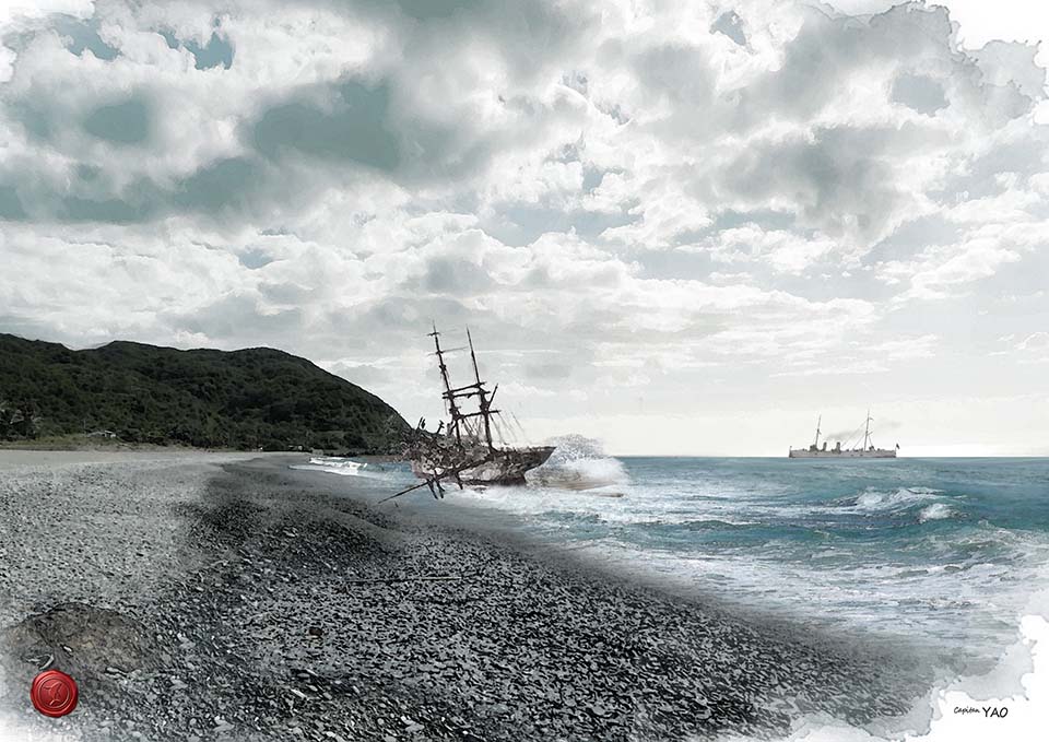 SV Otelia Pedersen號是一艘美國籍的Schooner(通常指雙桅縱帆船,但是本船是4桅),1902年9月25日在台灣海域的強風中損壞,10月6日船員被路過的美國海軍「普林斯頓號」砲艦(USS Princeton)救起並宣布棄船, 當天晚上放棄的船隻漂流到蘭嶼(當時稱紅頭嶼)並被擊碎在礁岩上。當時USS Princeton正從菲律賓呂宋甲米地的駐地轉往日本的浦賀,這是美國方面資料的紀錄。SV Otelia Pedersen號的船員最後在長崎登岸。 根據日本方面的紀錄則是另外一種情況。總督府11月21日據恆春牡丹灣派出所來報在台灣東岸有一艘約2,500噸的汽船在漂流,船上無人,載有數萬根木料。海軍在台北的幕僚即派南清警衛艦「千早」號 通報艦於11月22日晨從廈門泊地出發前去火燒島與紅頭嶼搜查,當時駐廈門的「淺間」與「高砂」兩艦正要回國,亦隨同經台灣東岸協助勘查。 根據「千早」發回的電報,在恆春牡丹灣北2浬處發現SV Otelia Pedersen漂流的船體艏尾南北向橫陳,當時海況並不佳。「千早」的艦長松村直臣中佐(方接任3個月)並且在電報中稱觀察SV Otelia Pedersen有5根桅, 當時只剩一根尚聳立,船身漆白色,並有船名可以辨識,但船身大多破損並進水。當時還有大阪商船株式會社行駛這條航線的「明石丸」(兩年後亦在類似地點遭難)與岸上的恆春警察一同配合。 Otelia Pedersen號載有許多亞美利加松,大約有700多根漂流在海上,恆春撈獲不少。 關於SV Otelia Pedersen的背景,根據舊金山報紙San Francisco Call於1901年10月20日的報導,SV Otelia Pedersen 長207呎﹑寬39呎﹑深14呎7吋,可以搬運一百萬呎的木材, 由舊金山北灘著名的C. G. White設計於1901年建造完工。船長 是John Pedersen,主要業務是往澳大利亞運送木材。在San Francisco Call的報導中還附上一張SV Otelia Pedersen的大圖, 顯示她4枝帆桅的壯觀身影。報導同時說明她剛剛從澳大利亞完成處女航回來,並且從Hllo載回滿船的糖,獲利豐厚,John Pedersen個人就分得了7,500美元。(註1) 根據紀錄當時John Pedersen是帶著太太同行, 這也符合當時美國船長的習慣。 到了1902年初SV Otelia Pedersen留下的紀錄稱,這艘排水量679噸(或稱789噸)的船在1月20日從Eureka港前往澳大利亞新南威爾斯。船東是來自美國舊金山的J. C. Hansen,船上大部分的水手都是北歐人, 有4個瑞典人(包括大副與二副)﹑2個挪威人﹑2個美國人﹑1個德國人與1個法國人。(註2) 由於Pedersen這個姓就與北歐的丹麥與挪威有關,或許整艘船就是一個北歐移民社會。 據瞭解SV Otelia Pedersen載運的木材是要送往香港給建造英國皇家海軍軍艦的造船廠使用,所以這一趟航程可能未經過澳大利亞而是直接從美國西岸開來,並想繞過南台灣的鵝鑾鼻前往香港, 但這還需要更多資料來佐證。12月16日美國領事館發出照會放棄這批木料交由總督府處理。 在1950年加利福尼亞成為美國的一州後,龐大的亞洲市場讓太平洋航線變成獲利十分豐厚的通路,當時北加州的松木是重要的出口品,由於獲得舊金山的港口,這兒具有冒險家個性的航商逐漸凌駕 原來美國東岸波士頓傳統的航商世家,SV Otelia Pedersen正處在這個年代。無論如何,如此壯麗的大帆船殘骸留在台灣東部海岸還是帶來許多想像空間,是很有價值的文化資產。