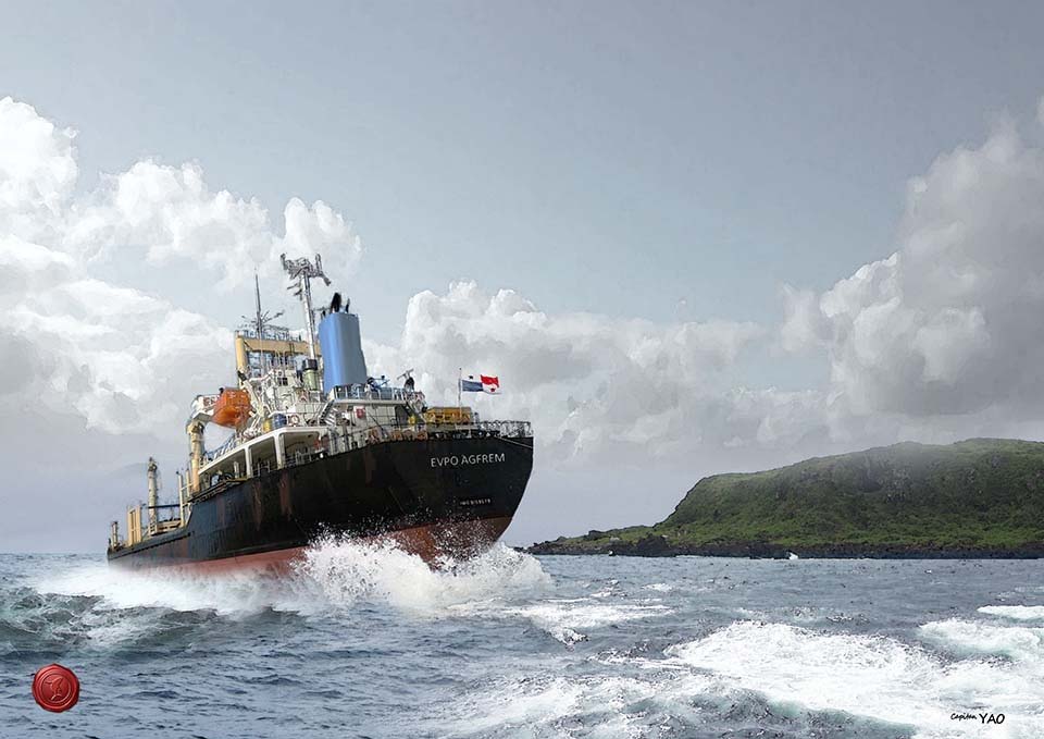 1988年9月24日,一艘巴拿馬籍的貨輪MV EVPO AGFREM, 在從中國經台灣計畫前往日本途中發生漏水,在基隆嶼 (根據國外資料座標為25°38N 121°59'E,但此座標位置在彭佳嶼西側約5浬處) 附近搶灘,之後在東北季風中解體,船員都獲救。 MV EVPO AGFREM的 IMO編號為7414377,為1975年在日本今治市的今治造船廠(Imabari Zosen - Imabari Shipbuilding, Imabari)建造的通用貨輪,排水量6,499總噸,載重11,598噸,船身長123.4米、寬20.4米、深8.2米,動力系統為一台柴油主機、單軸單槳、速率13節。