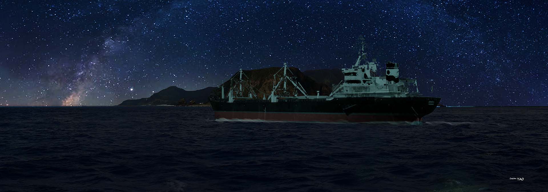 (圖說) "MV Korean Castle"通過蘭嶼東岸往南駛,在小蘭嶼觸礁後轉往八代灣錨地沉沒。