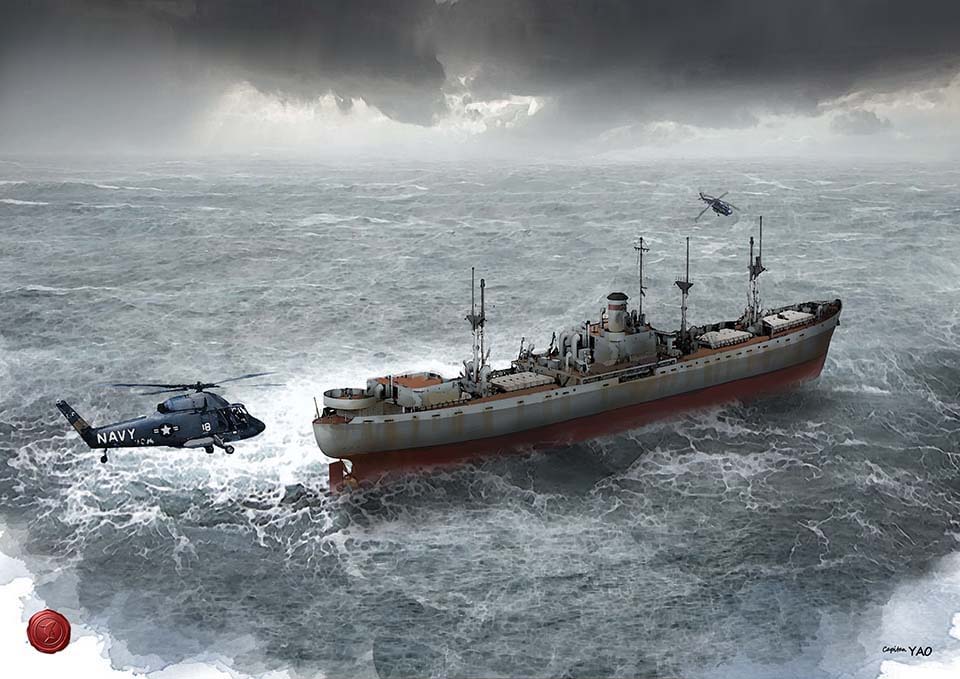 1967年11月6日,一艘賴比瑞亞籍的貨輪Loyal Fortunes號由越南蜆港開往高雄在Emma颱風中於東沙島 (座標20°43N 114°43'E,離東沙環礁約100浬) 觸礁而全毀。這艘輪船的救援行動是由美國海軍航空母艦「珊瑚海號」(USS Coral Sea, CV-43)的直升機完成的,以下是根據美國海軍的史料彙整的事件經過。 「珊瑚海號」航空母艦於10月29日上午駛入蘇比克灣,但颱風艾瑪(Emma)迫使她出海避風三天,之後轉向北駛前往香港。11月6日改變航線前往距離香港東南方170哩的東沙島礁去協助賴比瑞亞籍的貨輪SS Loyal Fortunes。11月7日7時30分左右,兩架直升機冒著70節的強風和30呎高的巨浪從「珊瑚海號」出發,分別前往15哩外的遇難船隻。由於去年「奧利斯坎尼號」號航空母艦(USS Oriskany, CVA-34)拯救SS August Moon損失一架直升機的經驗,這一回飛行員不敢太靠近船隻,而且「忠誠財富號」上有沒有地方可以降落,為了指揮吊掛作業與確保船員們知道該怎麼做,直升機先把威廉G。斯特勒士官長(William G. Steller)垂降到甲板上。 直升機來回穿梭於兩船之間,最終將37名華人船員全部接上「珊瑚海號」,由於SS Loyal Fortunes的無線電已經失靈,必須通過在附近的英國軍艦HMS Manxman來轉接通訊。當地離東沙島有200哩,他們在第二天抵達香港下船。 Loyal Fortunes號是美國與二次大戰大量建造的EC2-S-C1 型「自由輪」(Liberty Ship) , 1943年在美國伯利恆鋼鐵公司的造船廠(Bethlehem Shipbuilding Corp. Ltd. - Bethlehem Steel)建造,鋼質船殼船身長134.7米、寬17.4米、深11.3米,動力系統為通用機械公司(General Machinery Corp., Hamilton, Ohio)生產的1台燃油鍋爐及3汽缸三段膨脹式蒸汽機、339公稱馬力、單軸單槳、速率11節。 本輪完工後先屬於美國在二戰成立的船舶委員會,船名為SS U. S. O.,戰後1947年出售予紐約的Blidberg Rothchild Co. Inc., New York,仍使用SS U. S. O.船名。1954年本輪轉售予蒙羅維亞的Cia. Maritma Columbella SA, Monrovia,改名SS Loyal Fortunes,改懸賴比瑞亞旗。1965年轉手Peggy Nav. Co. SA, Monrovia與1967年Loyal Navigation Co., Monrovia都是賴比瑞亞籍並維持原船名。 60年代正是越戰最熱的時候,南海充滿美國軍艦,所以當時在東沙島遇難的輪船大部分都由美國海軍航空母艦的直升機救援,台灣雖然在東沙島駐軍,但除非常態進駐救難中隊直升機,否則很難提供有效援助。而且南海各國商船都有,許多是開往香港的,複雜的國際問題也不是台灣軍方有辦法處理,像連續幾次東沙船難的後續問題外交部也只能透過駐淡水的英國領事館代轉。 從「順利輪」、SS August Moon、「僑寧輪」到SS Loyal Fortunes雖說都是在東沙島遇難,但狀況不大相同,「順利輪」是僅有幾千碼,直接就在軍事管制範圍內,所以管轄權較無爭議,SS August Moon與「僑寧輪」距離大約10哩,所以詢問外交部解釋,認為不在3浬領海管轄範圍,至於SS Loyal Fortunes距離達200哩,毫無疑問是與台灣無關了。但對於美國海軍不管在那裡,機艦來去自如,這就是另一個問題了。