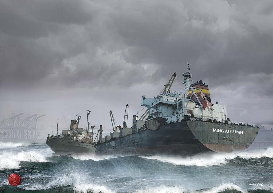 (圖說) 巴拿馬籍貨輪MV TA SHEN受莎拉颱風影響在高雄港與陽明海運的「秋明輪」相撞而沉沒。